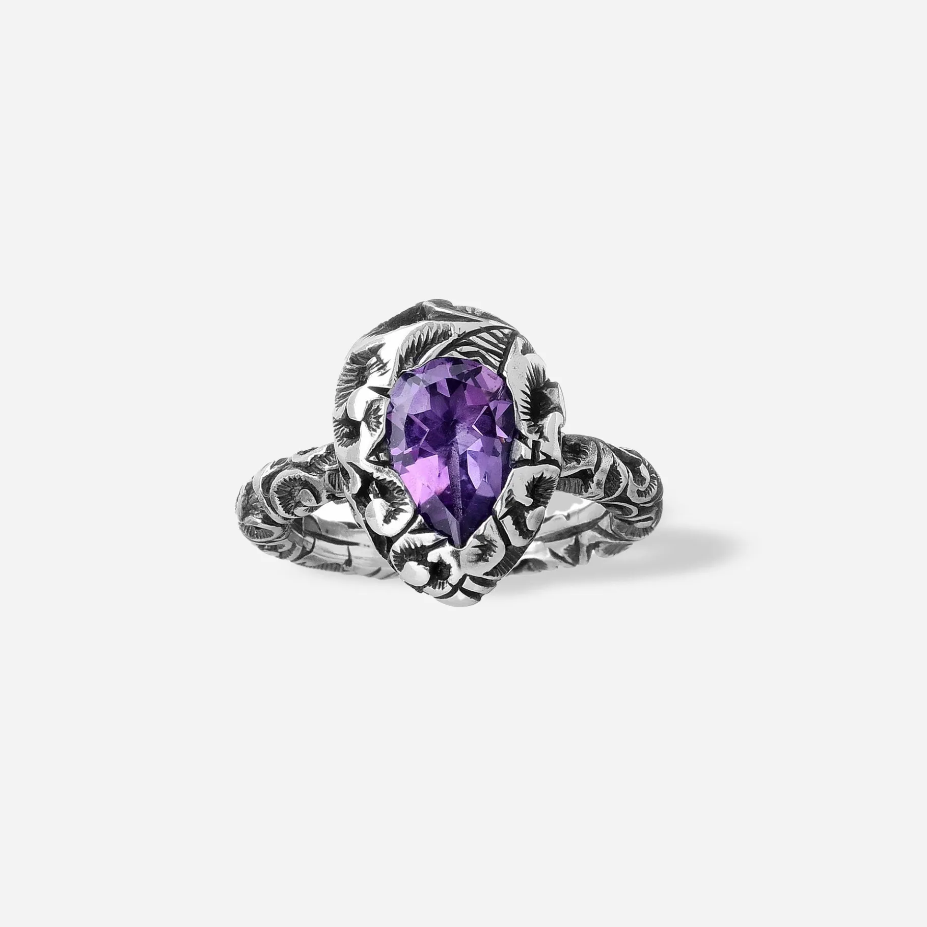 Questo anello solitario in argento brunito è impreziosito da una pietra naturale in forma a goccia. Scegli la pietra che più ami.