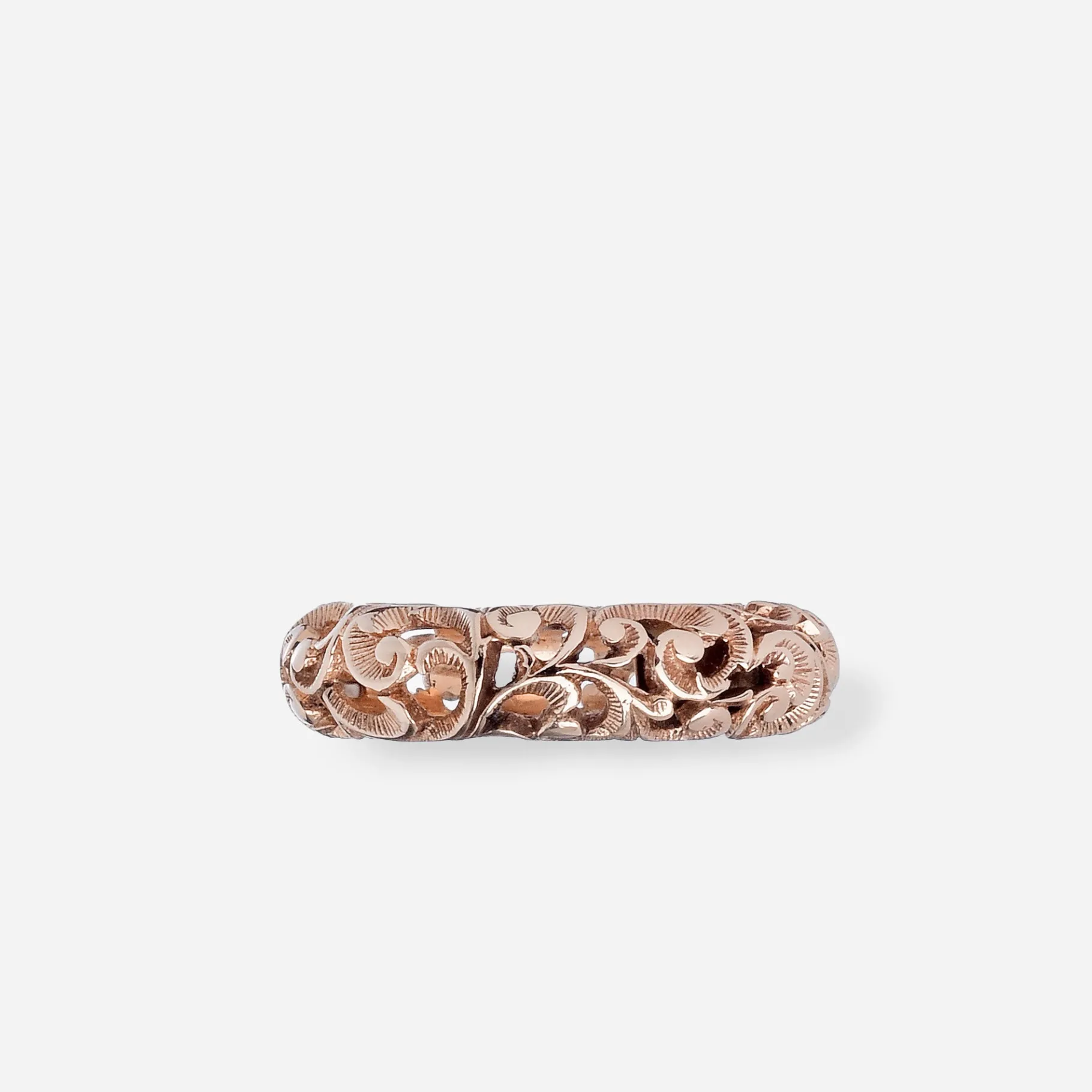 Fede in argento placcato oro rosa 18 kt. Il design tipico della maison esaltato dalla lavorazione traforata.