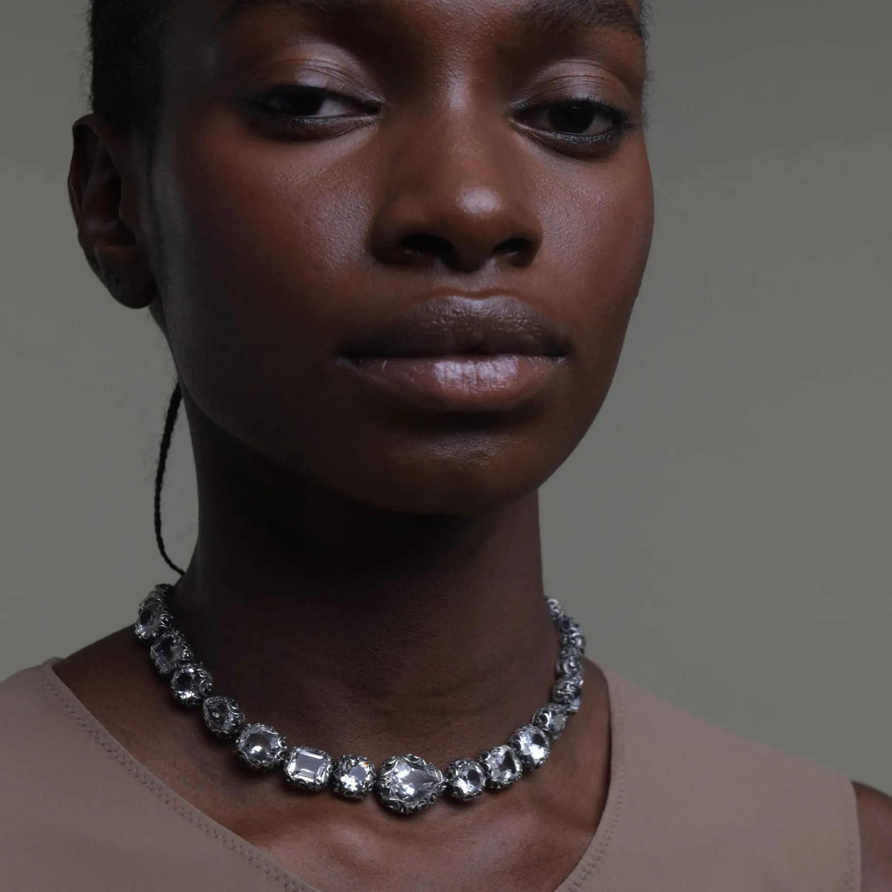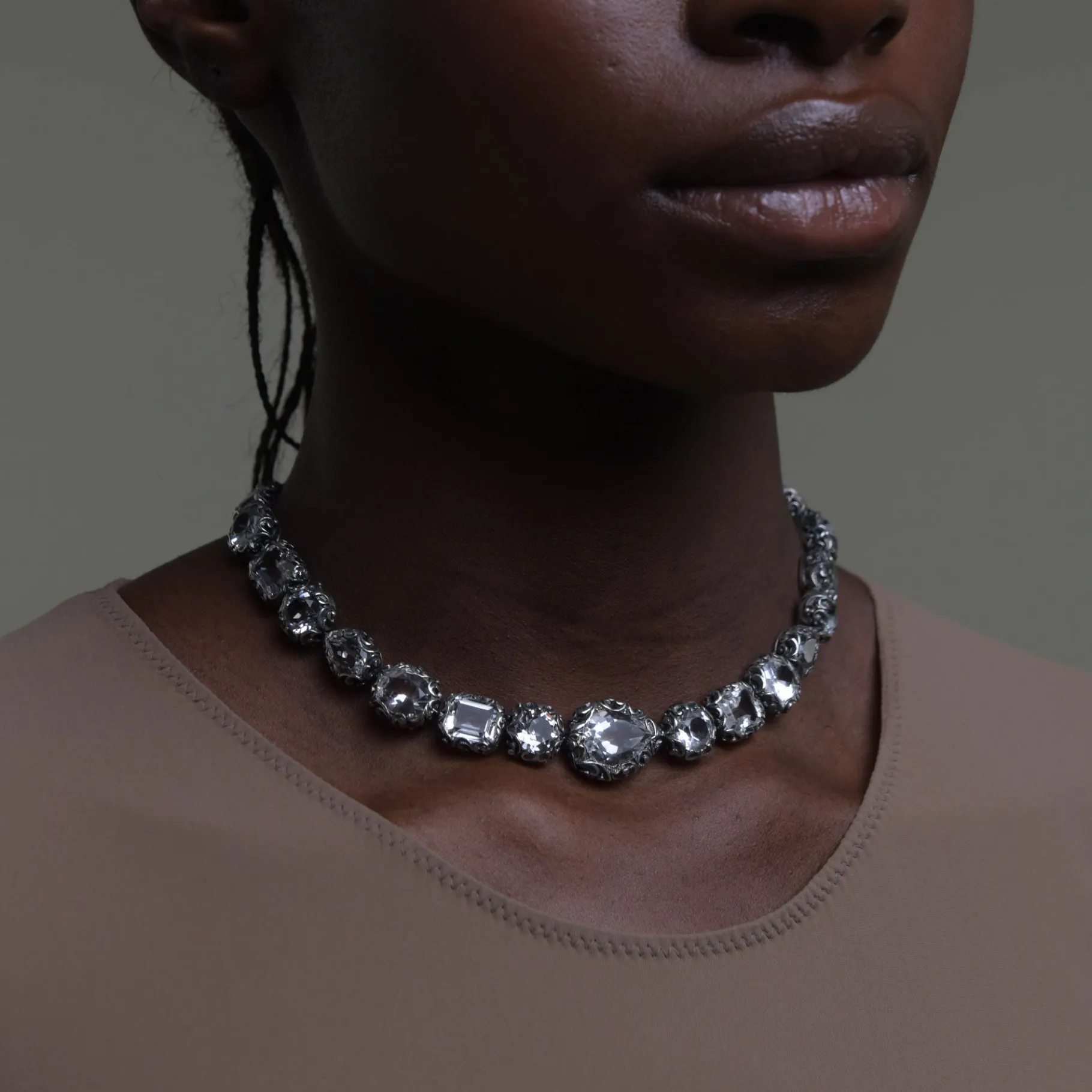 Questa collana girocollo è un’esplosione di luce ed eleganza grazie all’alternanza dei tagli delle quindici pietre in Cristallo di Rocca naturale. Un pezzo davvero unico.