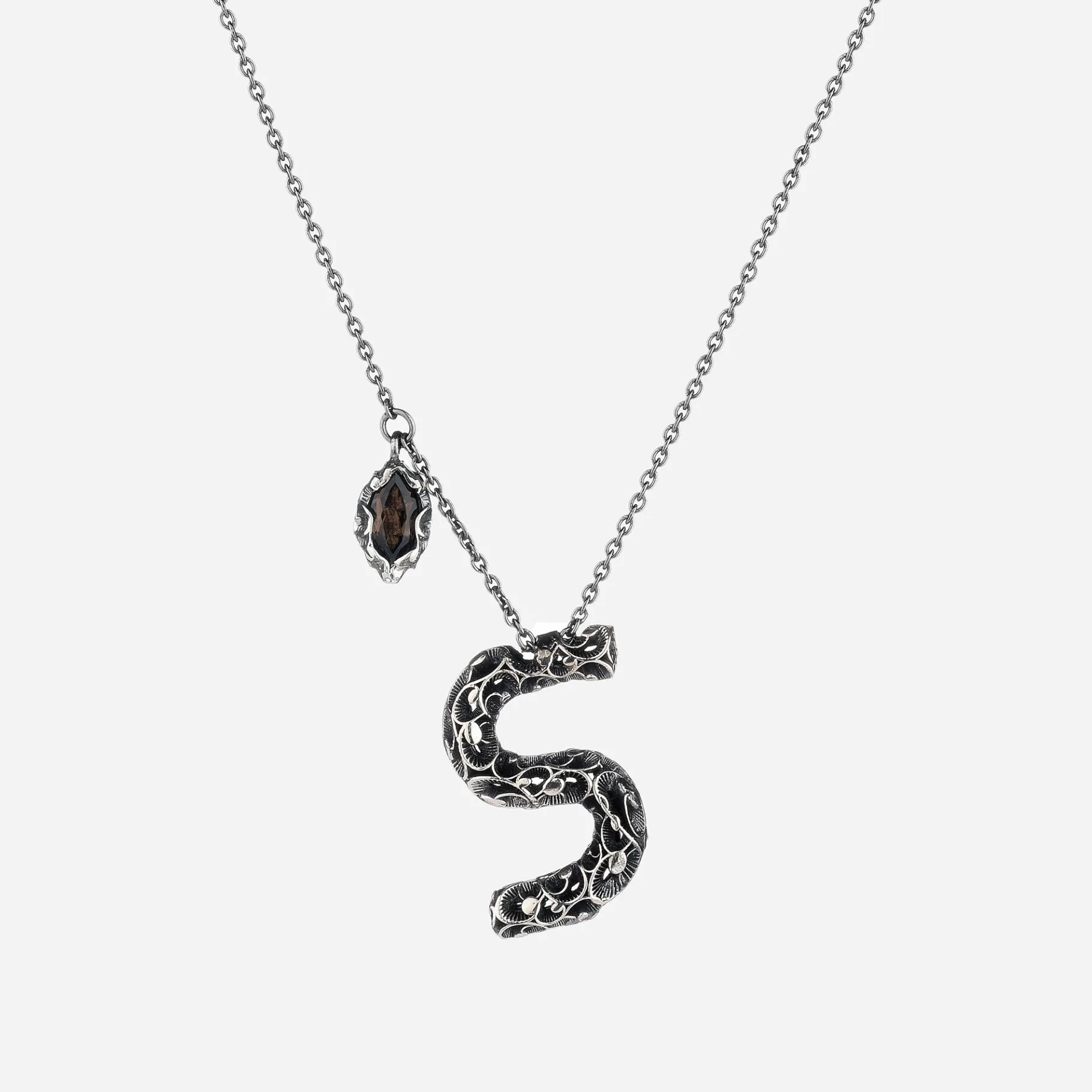 S come… solo tu lo puoi sapere. Questa collana con ciondolo a lettera è un must have sempre amatissimo impreziosito dai nostri artigiani con una lettera in argento brunito incisa a mano e rifinita a bulino. La lettera S è accompagnata da un punto luce in pietra naturale quarzo fumé.