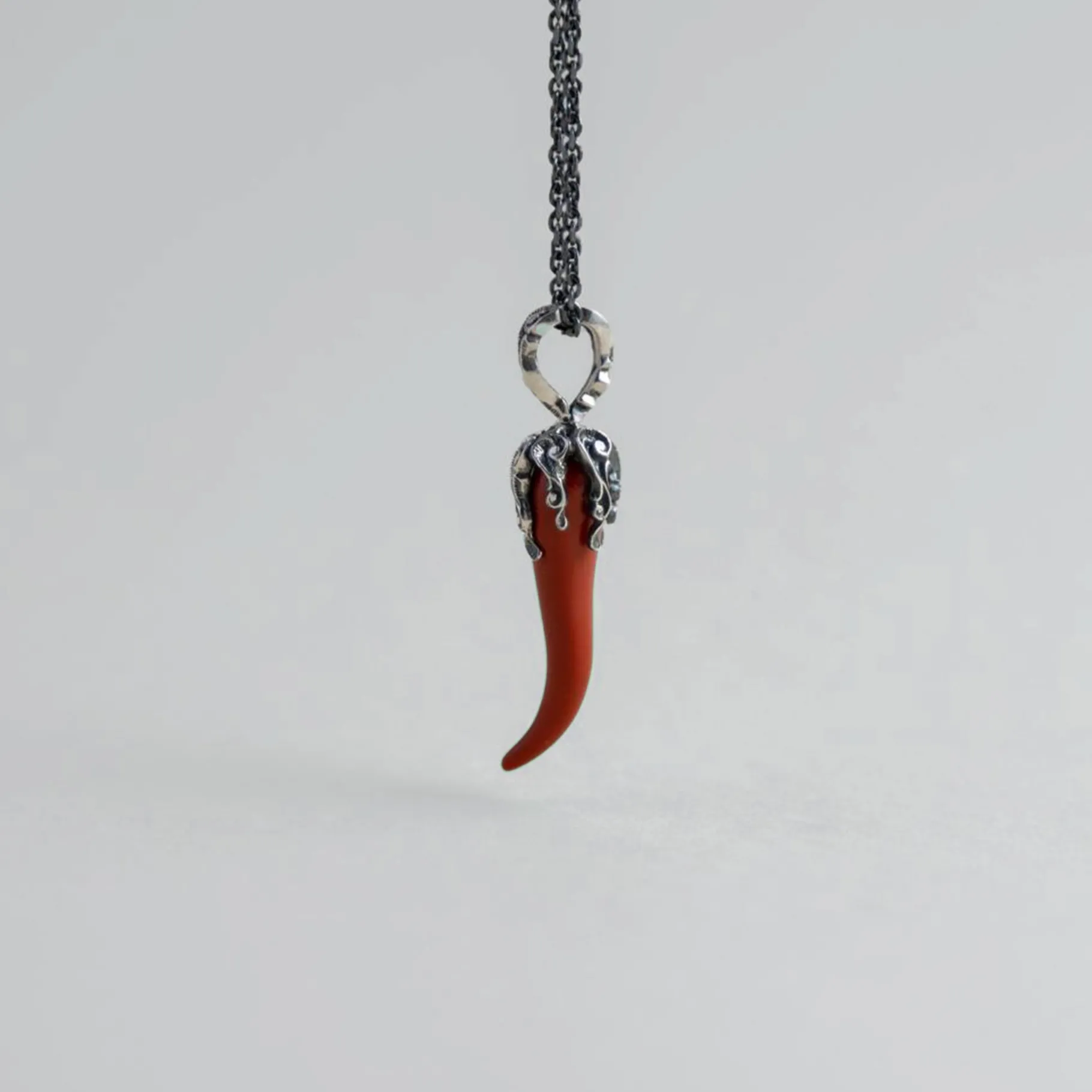 Collana lunga in argento brunito con ciondolo a cornetto in pietra naturale lucida. Un tocco di colore per outfit di tutti i giorni. Scegli il ciondolo nel colore che più ami.