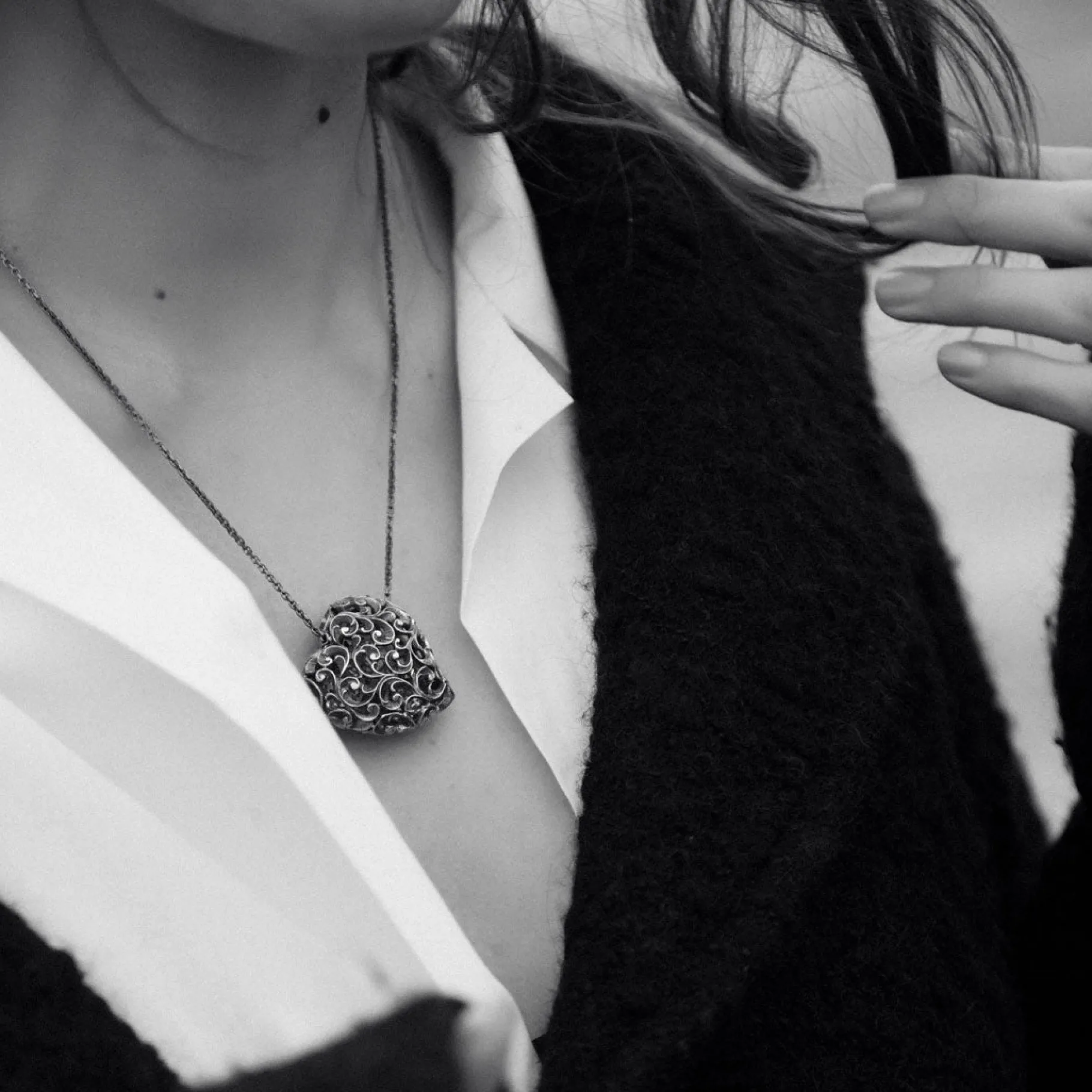 La collana Shakti Love classic è un accessorio must-have per ogni donna. Una lunga catena forzatina culmina nel grande pendente a cuore intarsiato. Indossa o regala questo gioiello come simbolo di amore.