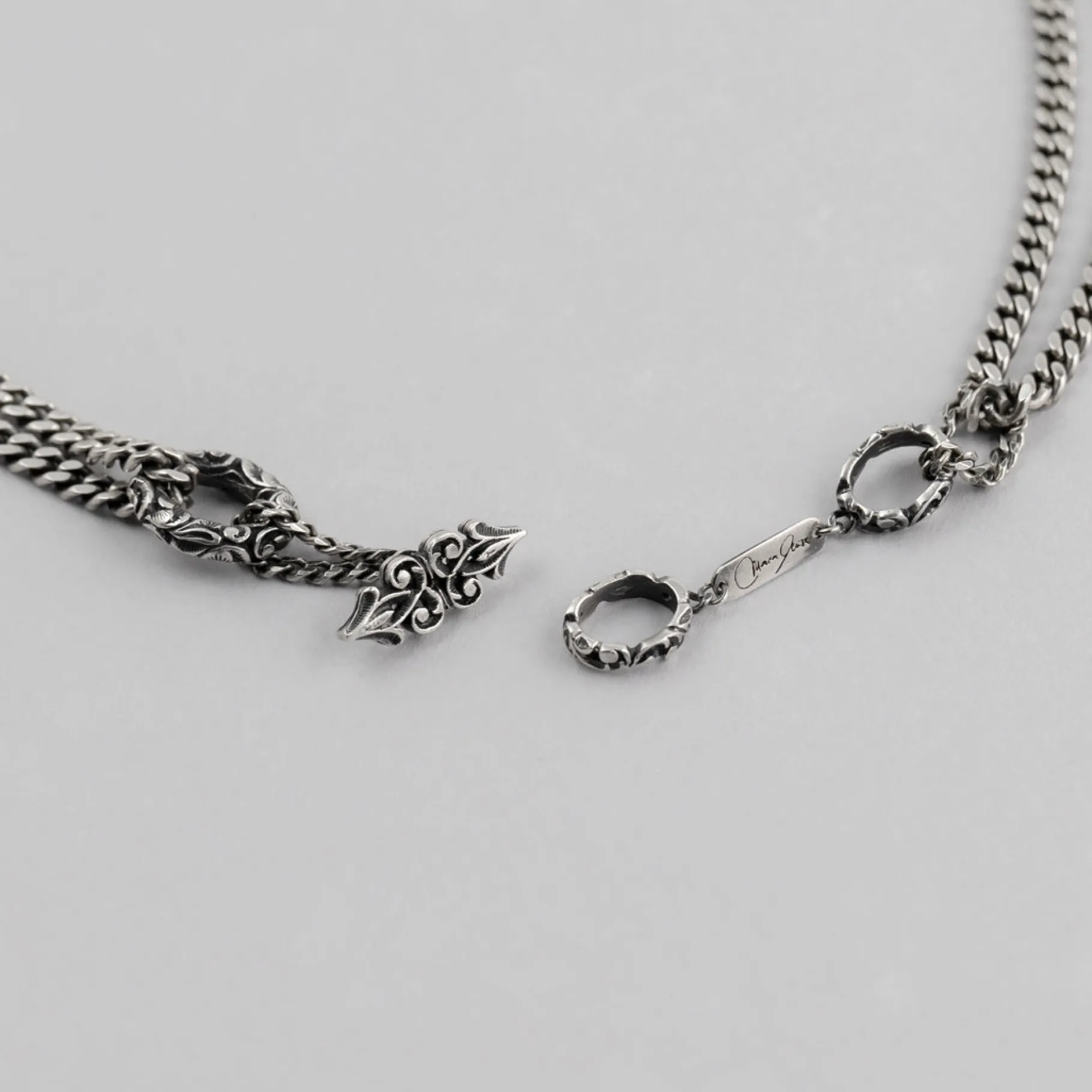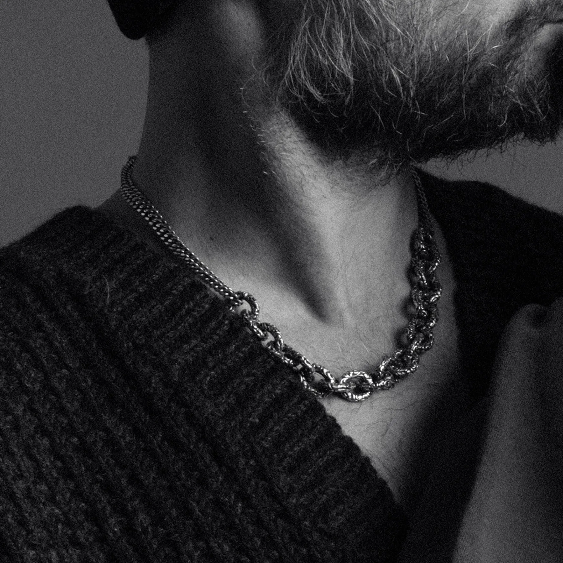 Collana da uomo girocollo in argento con catena ad anelli circolari sul fronte e liscia sul retro. Un tocco di carattere…