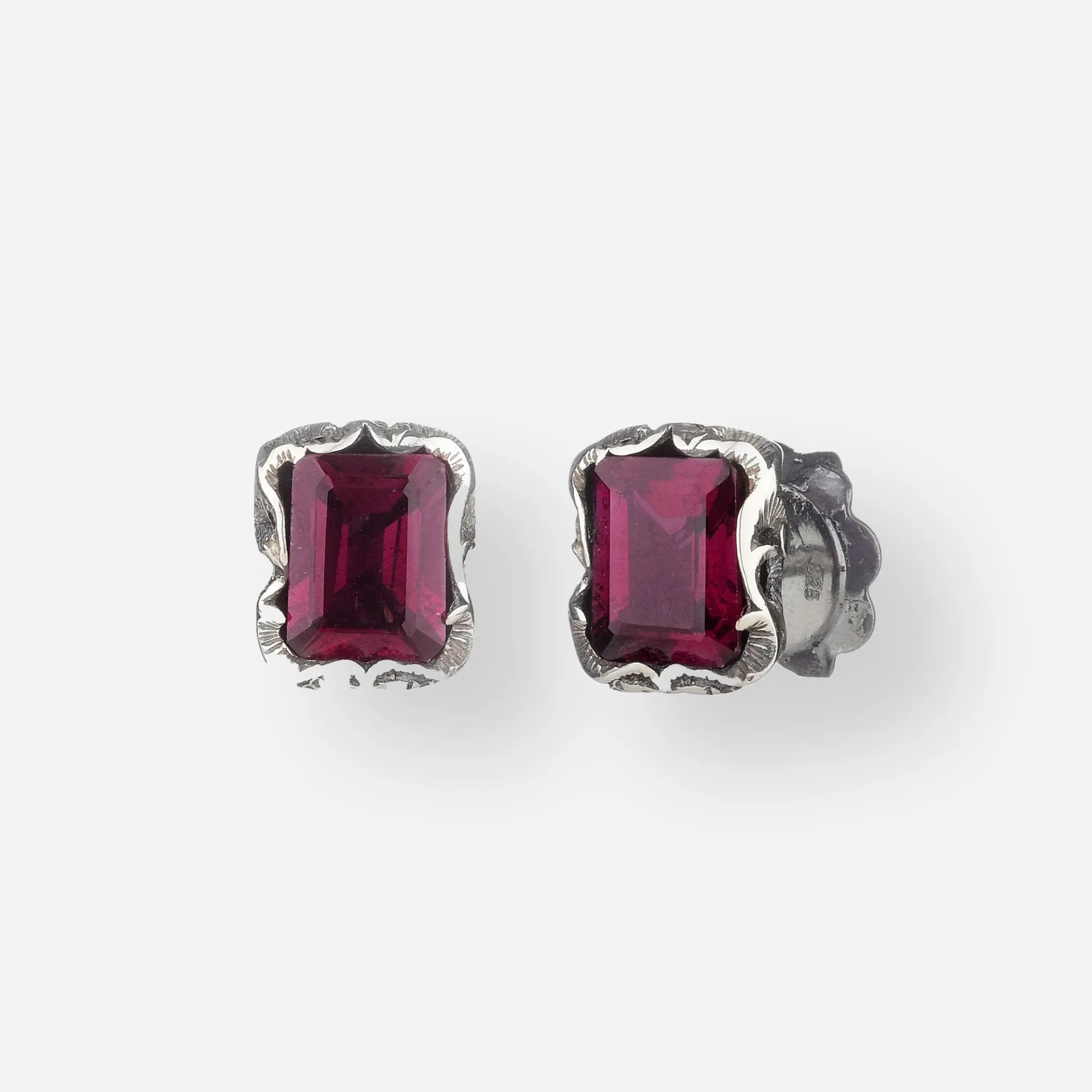 Orecchini punto luce in Rodolite Rossa naturale in taglio smeraldo. Un accessorio intramontabile realizzato completament…