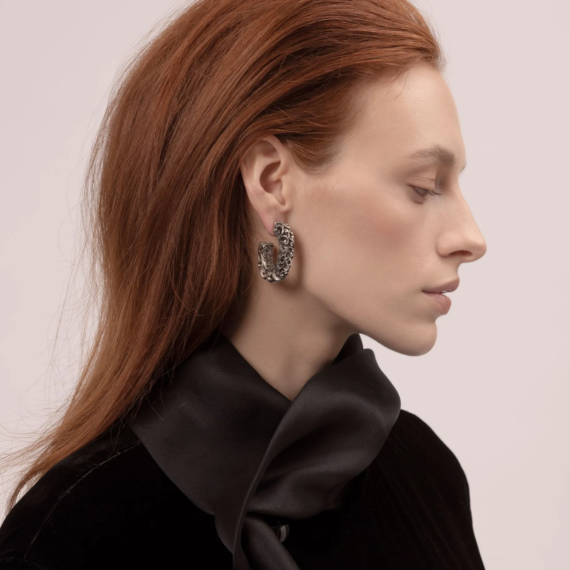 Orecchini bombati oval in argento. Uno styling semplice ma di effetto per look minimal che hanno bisogno di un accessorio di carattere.